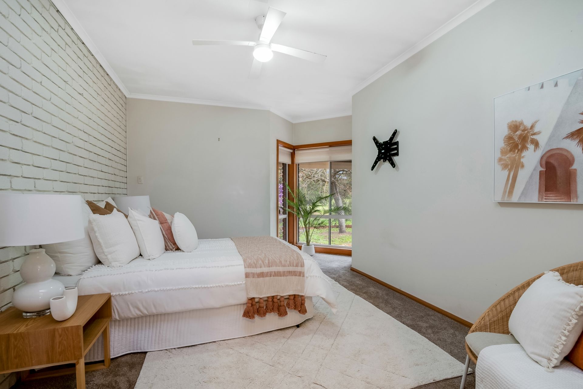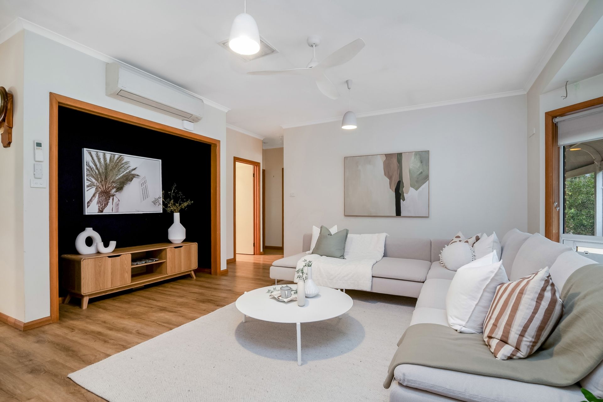 Freshly painted throughout, the home includes two oversized, plush-carpeted bedrooms, a third with hybrid flooring, and built-in robes in all. The master includes a walk-in robe with potential for further improvement. A dedicated TV room is wired for surround sound and can accommodate screens up to 85". With no close neighbours, you can enjoy full volume movie nights in peace.
