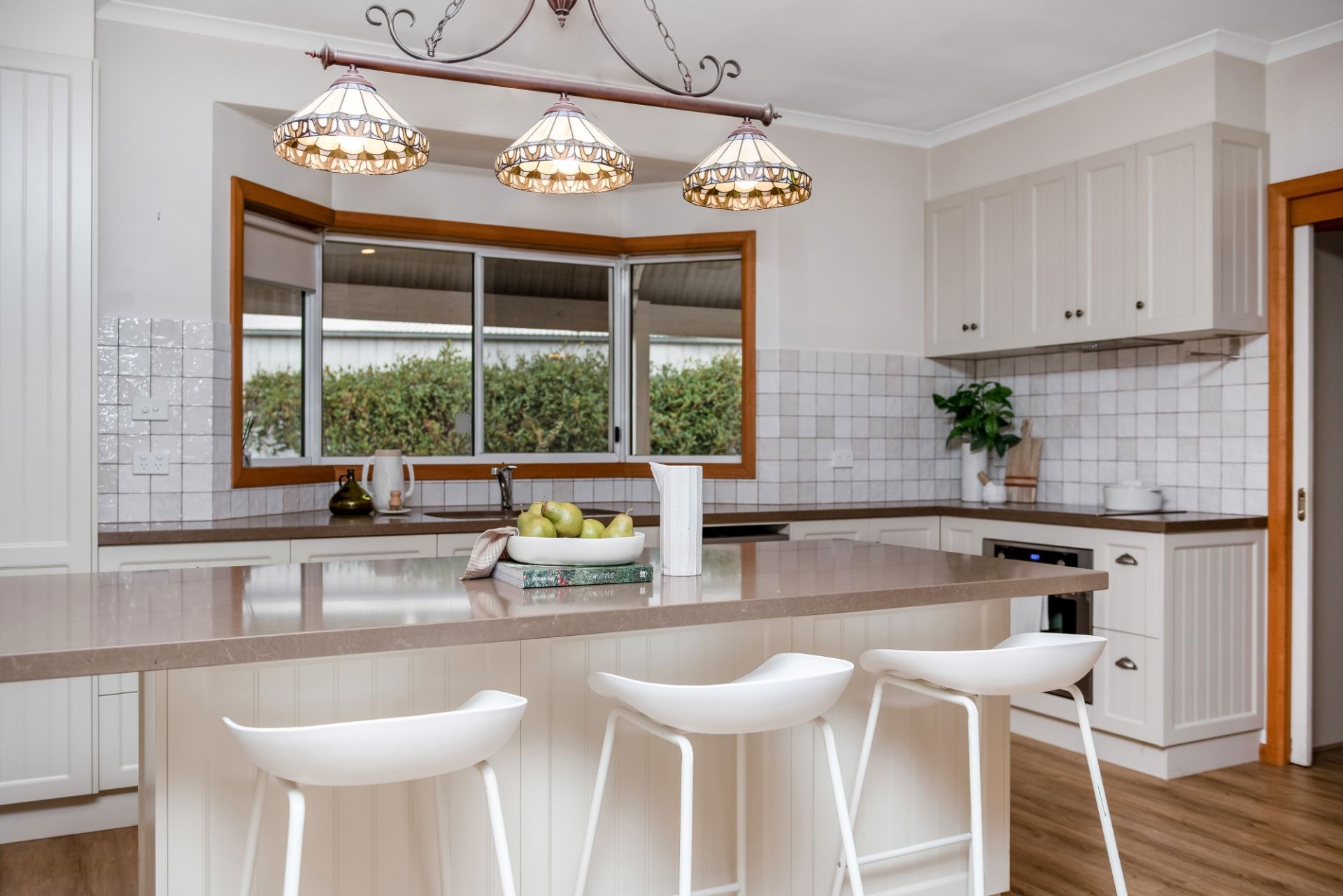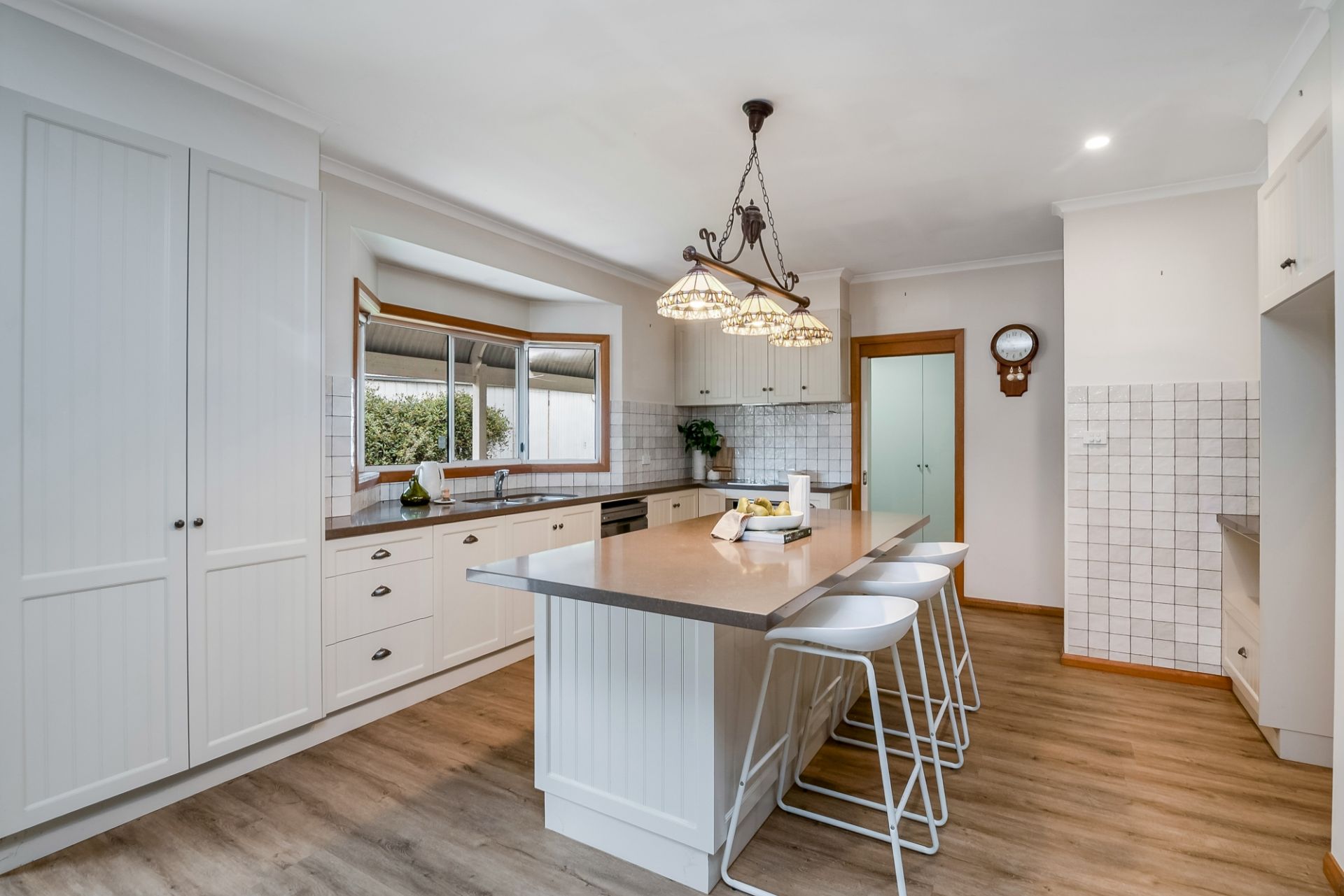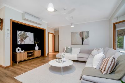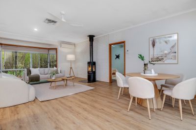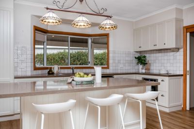 At the heart of the home is a stunning bespoke kitchen and laundry renovation. Featuring stone benchtops, induction cooktop, pyrolytic oven, dishwasher, soft-close cabinetry, auto-sensor bin, and a solar battery-powered appliance station, it's been designed for both beauty and function. The spacious island bench with a 4-seater breakfast bar and exceptional storage makes everyday living a breeze.